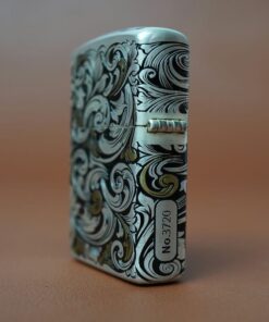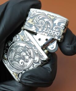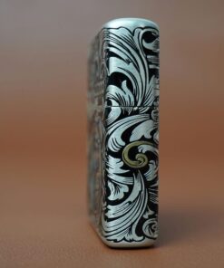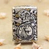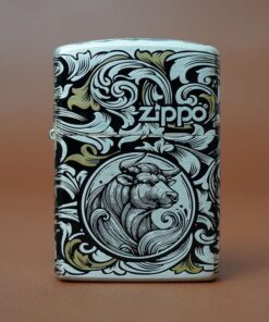 - Zippo 12 con giáp cao cấp năm Sửu – Trâu được khắc hoa văn 5 mặt. Mặt trước là hình Trâu được cách điệu vô cùng lạ mắt và các mặt còn lại được khắc họa tiết hoa văn tinh xảo.
