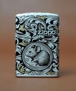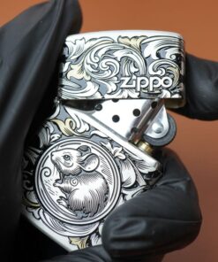 - Zippo 12 con giáp cao cấp năm Tí – Chuột được khắc hoa văn 5 mặt. Mặt trước là hình Chuột được cách điệu vô cùng lạ mắt và các mặt còn lại được khắc họa tiết hoa văn tinh xảo.