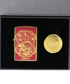 Để chào mừng năm Quý Mão 2023, Zippo tự hào giới thiệu một thiết kế sưu tập đặc biệt giới hạn ở khu vực Châu Á. Bộ sưu tập Zippo con giáp Quý Mão Asia. – Giới hạn 1000 bản cho thị trường Châu Á – Được thiết kế và trang trí tại Nhật Bản; – Zippo đã sử dụng các công nghệ tinh xảo để khắc họa hình ảnh chú Thỏ tượng trưng cho con giáp Mão Châu Á và logo ZIPPO cổ điển ở mặt trước chiếc bật lửa Zippo – Cả hai bề mặt đều được thiết kế trang trí công nghệ chạm khắc Laser phức tạp và công nghệ hình ảnh đặc biệt tạo nên lớp khảm in đầy đủ màu sắc, với lớp mạ vàng dày (Gold Plating) và có độ bóng cao. Hình ảnh chú Thỏ khảm đỏ trên nền Zippo mạ vàng sẽ mang đến cho bạn sự may mắn, hạnh phúc và phú quý trong năm mới. – Số Seri Limited được khắc trên mặt đối diện bản lề của bật lửa. – Mỗi bộ sưu tập được đi kèm với một đồng xu kỷ niệm mạ vàng thể hiện họa tiết năm Mão giống như trên bật lửa thông qua công nghệ chạm khắc sâu. – Hộp bên ngoài được đóng gói trong một hộp quà tặng dành riêng cho năm Quý Mão.